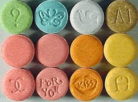 (Vzory prodávaných extází běžně na diskotékách a klubech)